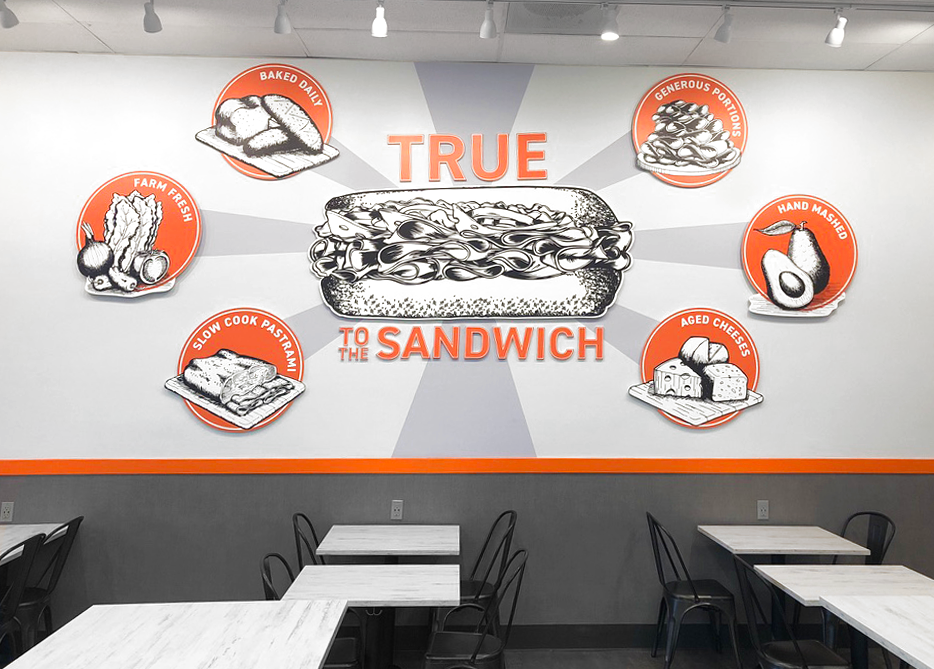 Togo’s has been serving up iconic sandwiches since 1971. Recently, Advancement Branding partnered with Togo’s to redefine how customers engage with the brand in store. Our team redesigned interior graphics, signage, menu systems, and introduced new digital ordering kiosks, all with a focus on affordability and flexibility across a wide range of store sizes and layouts. Advancement Branding is now working through franchisee and corporate owned locations to manufacture and install the new interior décor packages nationwide.