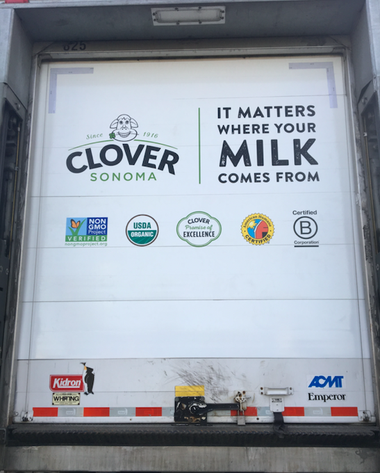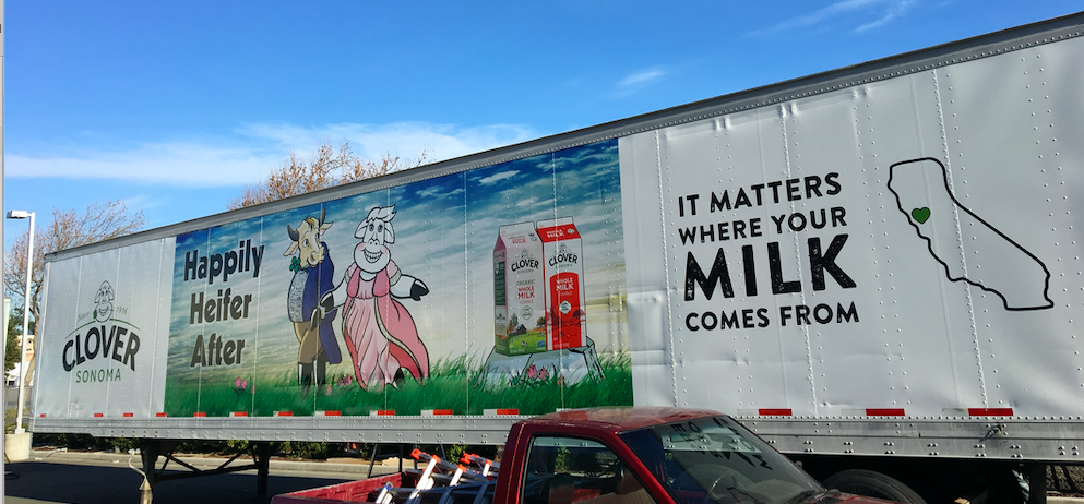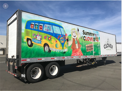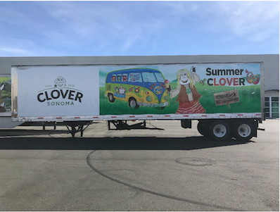 Advancement Branding partnered with Clover Sonoma to produce and install large scale semi trailer wraps, billboard graphics, and a range of other custom projects; including parade floats, test packaging, in-store POP . These high visibility applications extend the brand across mobile and fixed environments while maintaining consistency, durability, and strong visual impact.
