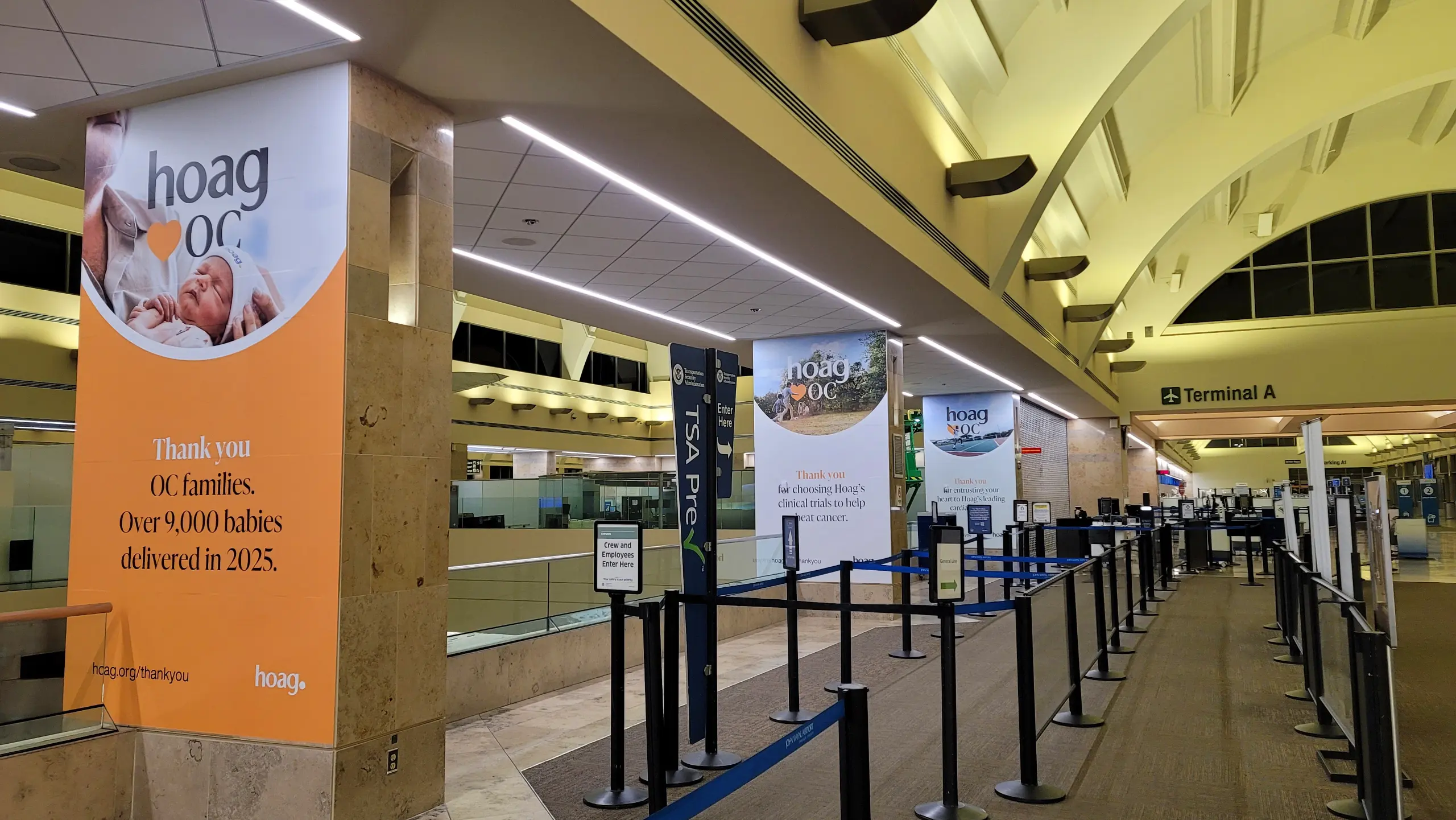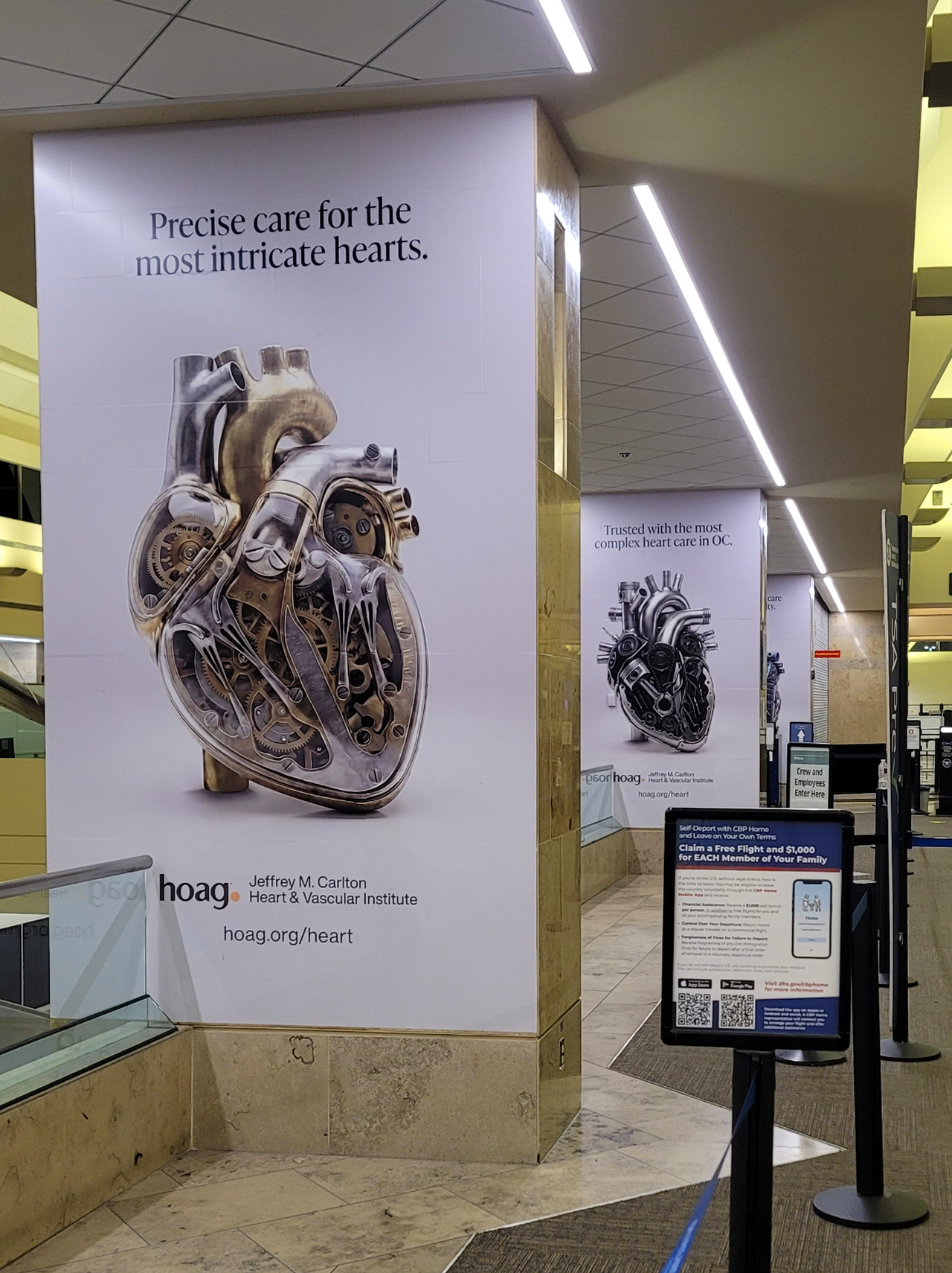 Lamar Advertising partnered with Advancement Branding to execute large scale wide format advertising installations at both Hollywood Burbank Airport and John Wayne International Airport. Working within active, high traffic transportation environments, our team produces and installs impactful advertising graphics across a wide range of surfaces including windows, walls, columns, floor decals, parking garages, bus stations, wall atriums, billboards, and elevator interiors and doors. Each installation is engineered for durability, clarity, and visual impact while meeting strict airport regulations and timelines. Through precise production, coordination, and installation, Advancement Branding helps Lamar deliver high visibility advertising experiences that engage millions of travelers across two of Southern California’s busiest airports.